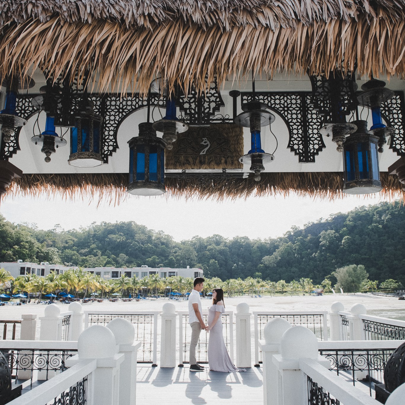 Aaron contacted us to request a photoshoot session with his belove Suzzane in St Regis Langkawi Resort couple months ago. Still remember the day was super sunny and awesome weather in Langkawi. We had the first location shoot in the one of the famous restaurant on the sea from the resort, Kayu Puti Restaurant. Following spots which is surrounding the beach side in the resort with some beautiful arches in the central between resorts and the beach. Langkawi photographer